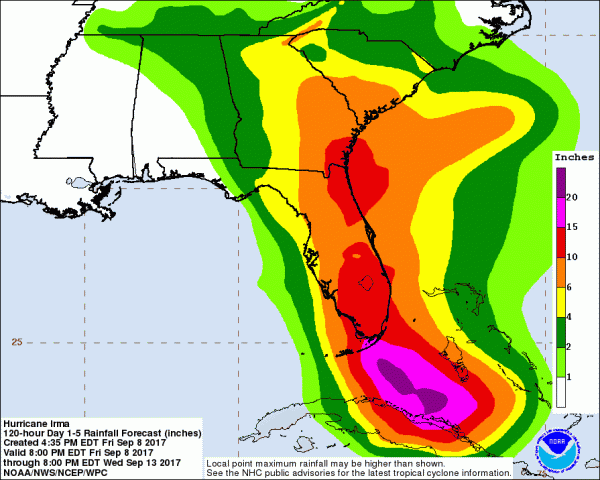 In Florida ist die Evakuierung in vollen Gange, denn neben dem Wind, wird auch der Regen, mit bis zu 250 l/m2 in Florida ein Problem.