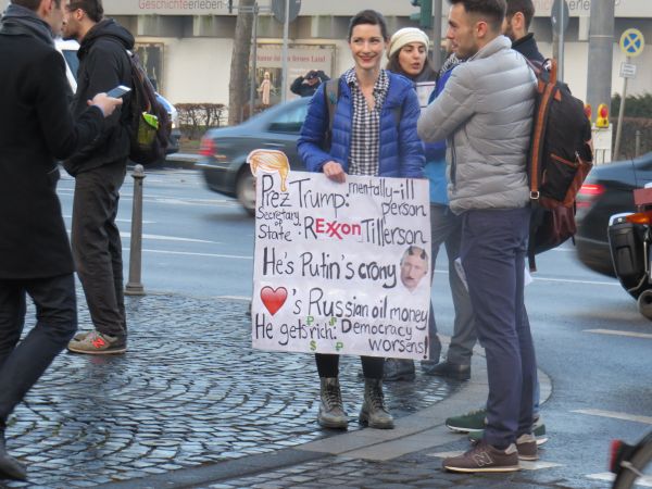Auf der anderen Seite der Sperrzone fand eine Demo ebenfalls gegen den Gipfel mit rund 400 Teilnehmen statt. Auch hier war neben der Kriege der G20 in Syrien und Jemen auch der Klimawandel ein Schwerpunkt. Besonders ärgert der neue Außenminister der USA unter Trump, der Chef von Exxon war.