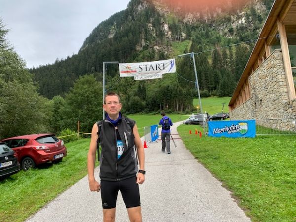 Nichts für schwindelfreie Menschen. Das Bild zeigt den Autor beim Start zum Steinbockmarsch in Tirol.