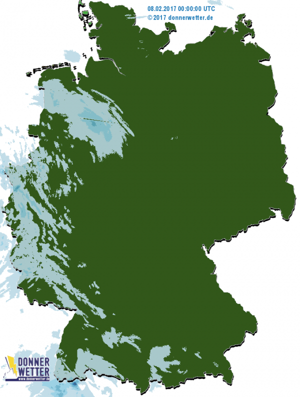 Gegen Abend setzte im Westen leichter Warmfrontregen ein, der am Donnerstag (02.02.) auch die Mitte und den Osten des Landes erreichte und hier gebietsweise zu gefährlichem Glatteis führte.