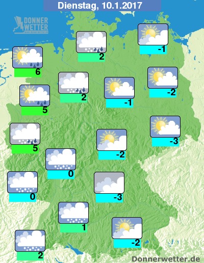 Stellenweise fielen hier über zehn Zentimeter Neuschnee. In der Osthälfte blieb es bei meist leichtem Dauerfrost vielerorts freundlich und trocken.