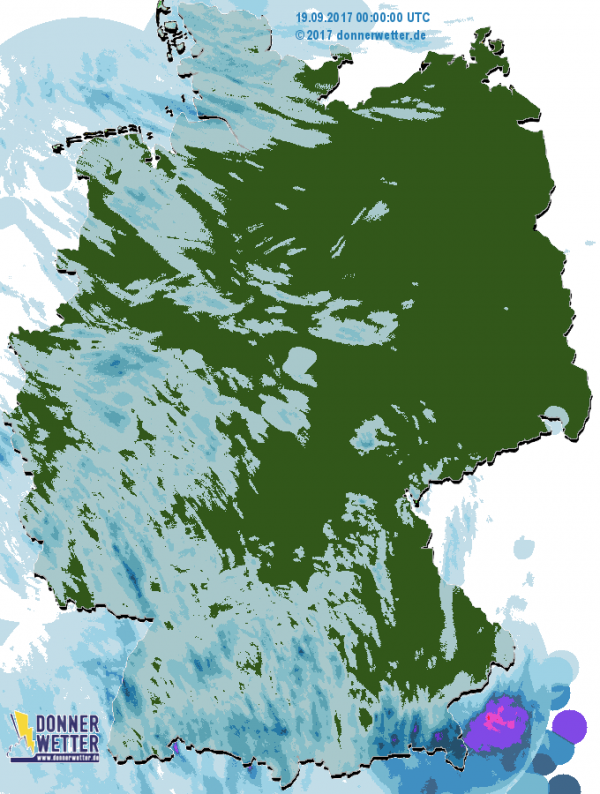 Am Dienstag (19.09.) zogen gebietsweise neue, teils kräftige Regengüsse übers Land. Örtlich blitzte und donnerte es dabei auch wieder. Zwischendurch gab es kurze sonnige Abschnitte. Die Höchsttemperaturen lagen wie in den vergangenen Tagen bereits meist zwischen 12 und 19 Grad C.
