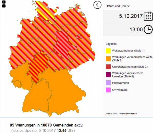 Am Donnerstag (05.10.) herrschte turbulentes Wetter in Deutschland. Sturmtief „Xavier“ sorgte bei enormen Temperaturunterschieden für großes Durcheinander im Land.