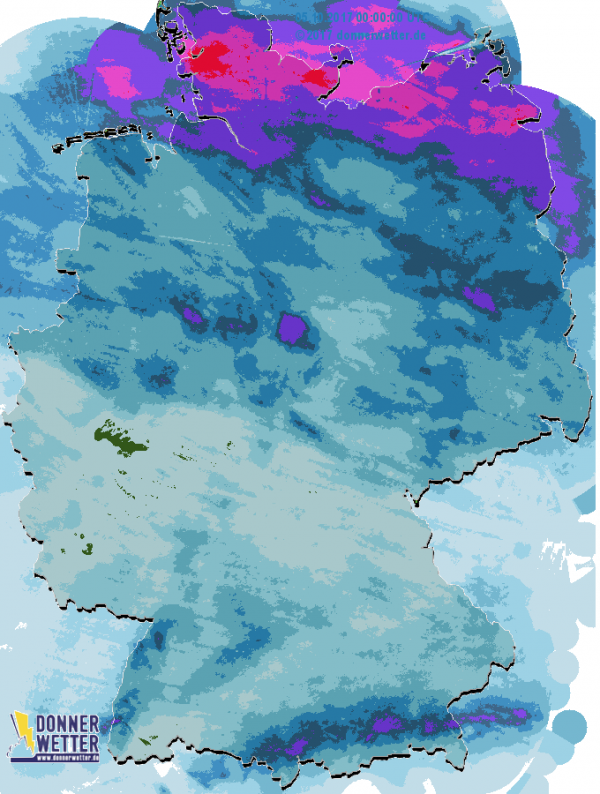 Während es im Norden bei kühlen 12 Grad C teilweise schüttete, gab es im Süden für längere Zeit spätsommerlichen Sonnenschein mit Temperaturen von bis zu 24,9 Grad C in Garmisch-Partenkirchen.
