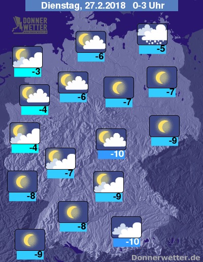 Vor allem im Osten gab es am Montag (19.03.) teilweise strenge Fröste von unter -10 Grad C. Tagsüber dominierten im Süden die Wolken und im Alpenvorland schneite es noch leicht. In der Mitte und im Norden schien längere Zeit die Sonne. Bei einem immer noch spürbaren Nordost- bis Ostwind erreichten die Höchsttemperaturen im Norden und Westen zwischen 0 und 6 Grad C, sonst blieb es verbreitet noch bei Dauerfrost.