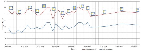 Mit dem August setzten sich dann aber Hochdrucklagen durch. Das Wetter stabilisiert sich zunehmend.
