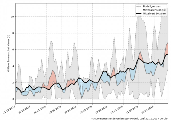 Unsere aktuellen Langfristprognosen für Lufttemperatur, Sonnenscheindauer und Niederschlagshöhe.