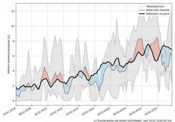 Unsere aktuellen Langfristprognosen für Lufttemperatur, Sonnenscheindauer und Niederschlagshöhe.