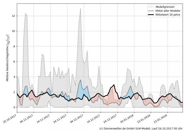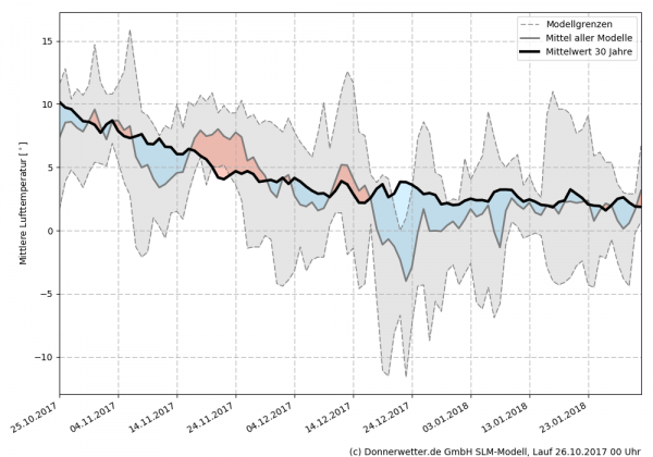 Der Westen muss sich über den Monatswechsel auf eine kühle und wechselhafte Wetterphase einstellen. Eine mildere Phase, in der die mittleren Lufttemperaturen über dem langjährigen Mittel liegen, ist dann erst wieder in der zweiten Novemberhälfte zu erwarten. Die zu erwartenden Niederschläge bewegen sich in den nächsten Wochen dagegen meist um den Durchschnitt.