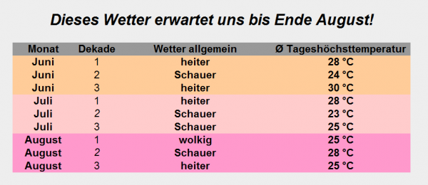 Das Dekadenwetter zwischen Juni und August 2017.