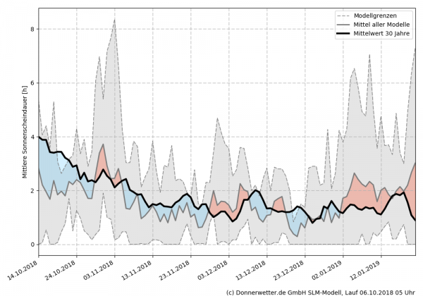 Unsere aktuellen Langfristprognosen für Lufttemperatur, Sonnenscheindauer und Niederschlagshöhe.