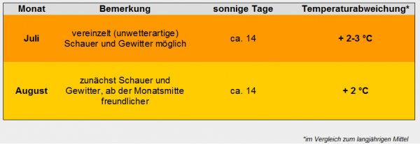 Danach gibt es aber Chancen, dass sich der Sommer, wie sich ihn die meisten wünschen, doch noch mal zu Wort meldet. Von beständig kann aber auch dann keine Rede sein, "Rückschläge" sollten stets einkalkuliert werden.