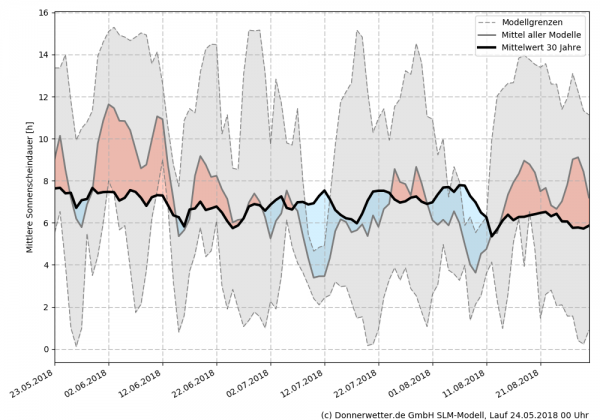 Unsere aktuellen Langfristprognosen für Lufttemperatur, Sonnenscheindauer und Niederschlagshöhe.