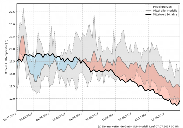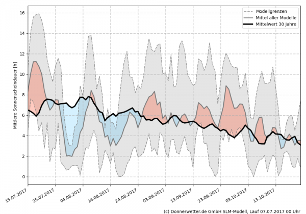 Nach einigen warmen Tagen zwischen dem 15. und 25. Juli legt der Sommer temperaturtechnisch im Norden eine Verschnaufpause ein. Beständig wärmer wird es vorraussichtlich erst wieder ab Mitte kommenden Monats. Beim Niederschlag sind mal trockene Phasen zu erwarten, mal spenden Schauer und Gewitter eine Abkühlung. Die Anzahl der Sonnenstunden sticht aktuell vor allem in der zweiten Julihälfte sowie ab Ende August positiv hervor.