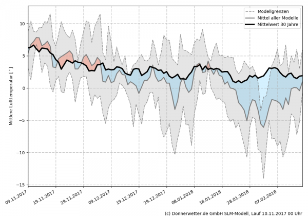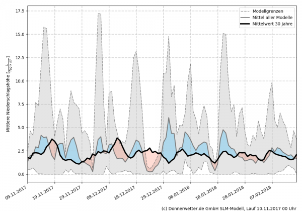 Nach einer vergleichsweise milden Wetterphase, wird es ab der zweiten Dezemberdekade frisch im Norden - dafür ist dann aber auch häufiger mal die Sonne mit von der Partie. Die zu erwartenden Niederschlagssummen liegen mal über, mal unter dem langjährigen Mittel. Eine besonders nasse Phasen deutet sich nach aktuellem Stand für den Zeitraum um den Jahreswechsel an.