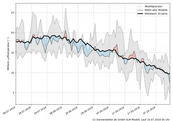 Die mittleren Lufttemperaturen verzeichnen in den kommenden Wochen im Vergleich zu den letzten Jahren laut aktueller Berechnungen einen kleinen Abwärtstrend. Zudem ist es bis Anfang August insgesamt zu nass, danach übernimmt die Sonne wieder häufig die Regie.