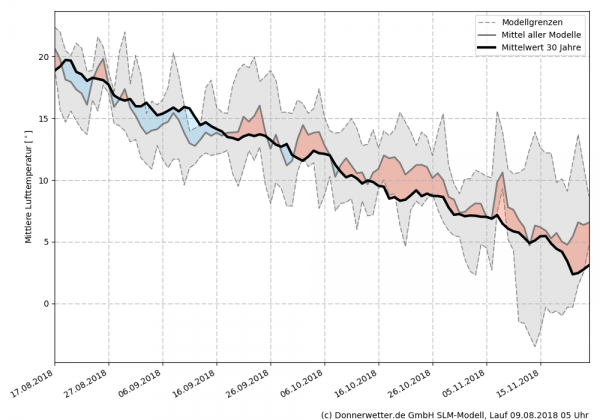 In den nächsten Wochen bestimmt eine jahreszeitlich zu kühle, feuchte und sonnenarme Phase das Wetter im Osten des Landes. In der zweiten Septemberhälfte deuten sich aus aktuelle Sicht dann wieder zu warme Temperaturen an und die Sonne zeigt sich wieder deutlich häufiger.