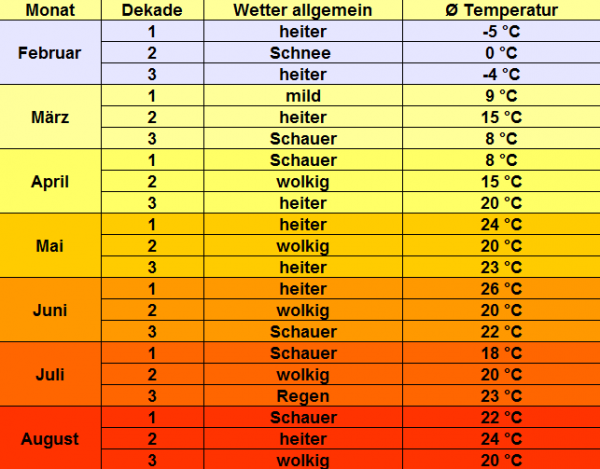 Unter dem Durchschnitt liegen im weiteren Jahresverlauf auch die Niederschlagsmengen. Sonnenanbeter dürfen sich auf mehr Sonne als üblich freuen.
