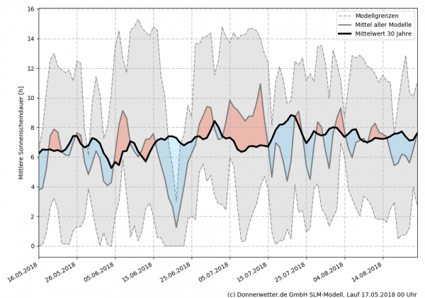 Wechselhaftes Wetter begleitet den Süden Deutschlands laut aktueller Modellrechnungen wohl auch noch über die nächsten Wochen. Sowohl Temperaturen als auch Sonnenstunden liegen über weite Strecken unter dem langjährigen Durchschnitt, die Niederschlagsmengen meist darüber.