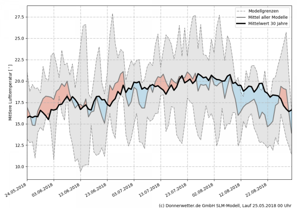 Unsere aktuellen Langfristprognosen für Lufttemperatur, Sonnenscheindauer und Niederschlagshöhe.