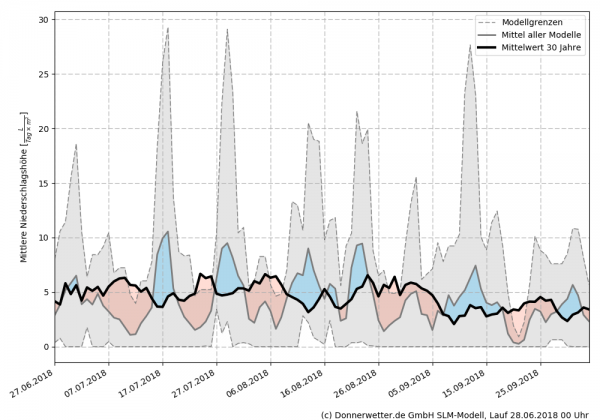 Unsere aktuellen Langfristprognosen für Lufttemperatur, Sonnenscheindauer und Niederschlagshöhe.