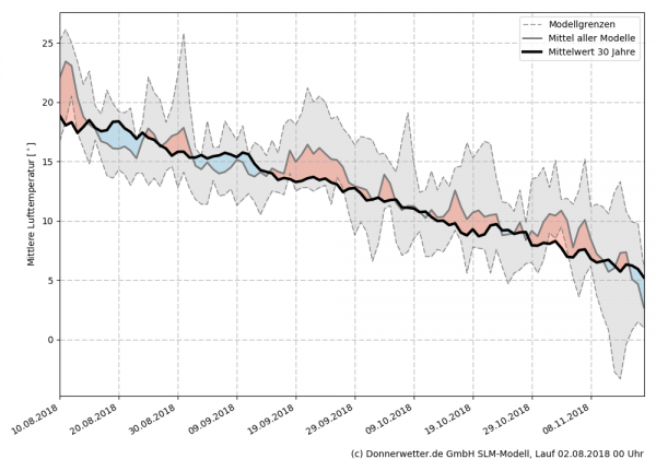 Unsere aktuellen Langfristprognosen für Lufttemperatur, Sonnenscheindauer und Niederschlagshöhe.