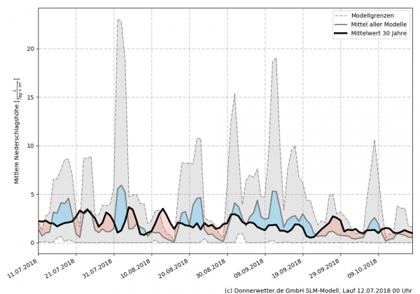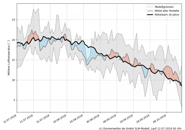 Zwischen Anfang August und Anfang September bewegen sich die aktuell berechneten Mitteltemperaturen unter dem langjährigen Durchschnitt, danach geht es wieder "bergauf". Die besten Chancen auf Sonne gibt es in den Tagen um die Augustmitte herum, den Osten erwarten in den nächsten Wochen sowohl zu trockene als auch zu feuchte Wetterphasen.