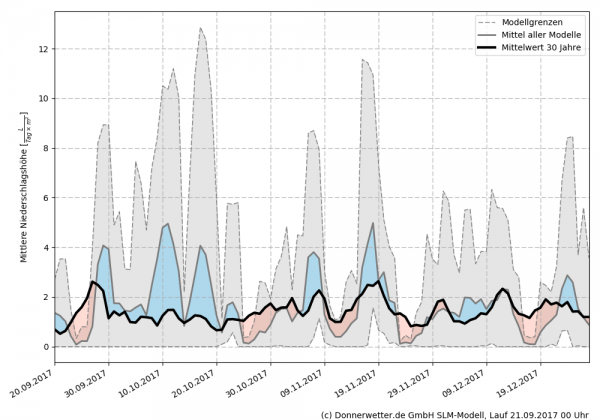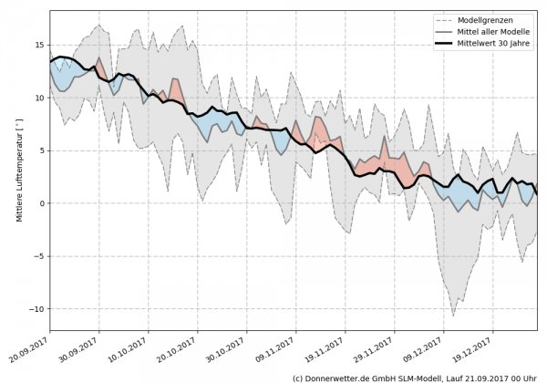 So begleiten den Osten in den nächsten Wochen meist unterdurchschnittliche mittlere Lufttemperaturen, mit dem neuen Monat wird es zudem deutlich zu nass. Ganz abgeschrieben ist die Sonne aber trotzdem nicht - besonders in der zweiten Monatshälfte des Oktobers sowie um die Monatsmitte des Novembers herum sind immer wieder sonnige Phasen zu erwarten.