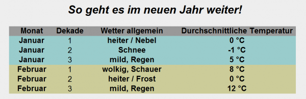 Nach einem kurzen Kälterückfall in der zweiten Februardekade deutet sich danach wieder rasch milderes Wetter an, der schnelle Übergang in den Frühling ist dann bereits in der ersten Märzhälfte möglich.