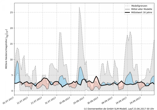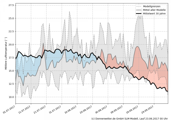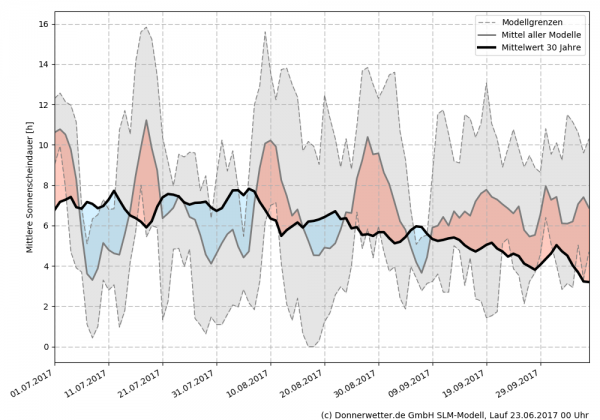 Auf einen warmen Juni folgt ein eher unterkühlter Juli - erst im Laufe des Augusts nehmen die Temperaturen wieder Fahrt auf und liegen für längere Zeit über dem langjährigen Mittel - ähnlich sieht es aktuell auch bei der Sonnenscheindauer aus. Niederschlagsreiche- und arme Phasen halten sich in den nächsten Wochen in etwa die Waage.