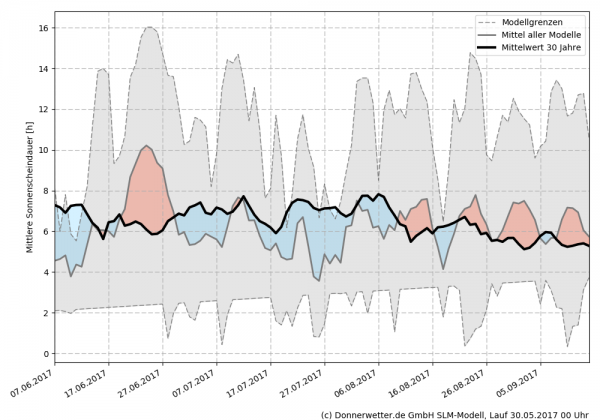 Im Norden nichts neues: Der Sommer 2017 kupfert sich aktuell als zu kühl ab. Dafür bewegen sich die Niederschlagsmengen unter dem langjährigen Mittel. Die Anzahl der Sonnenstunden bewegen sich, über alle Sommermonate gesehen, ungefähr im Durchschnitt. Die sonnigsten Phasen kündigen sich zur Zeit aber für den Spätsommer an.