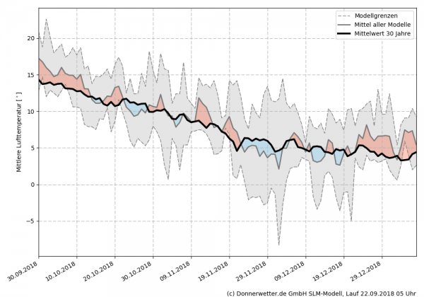 Morgen der 23.09.2018 ist der offizieller kalendarischer Herbstanfang der Nordhalbkugel. Wie man sieht fangen langsam die Bäume an ihre Blätter zu verlieren. Bis zum Ende des Monats Oktober ist mit überdurchschnittlichen Lufttemperaturen zu rechnen. Auch die Grafik der Sonnenstunden zeigt sehr viele Sonnentage, die von der Niederschlagsgrafik unterstützt wird. Das lässt auf einen schönen Herbst schließen.
