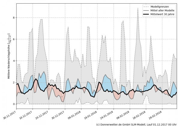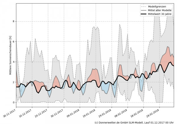 Unsere aktuellen Langfristmodelle berechnen für die kommenden Wochen auch weiterhin mittlere Lufttemperaturen, die einige °C unter dem langjährigen Mittel liegen. Bei den zu erwartenden Niederschlagsmengen sowie der Sonnenscheindauer ist der Trend weniger eindeutig, hier wechseln sich in der nächsten Zeit Regen- und Sonnenphasen immer wieder ab.