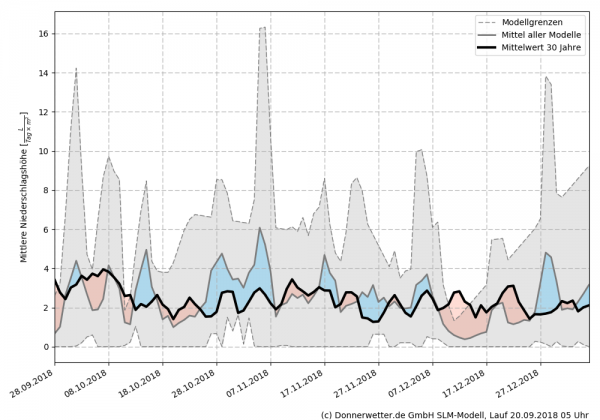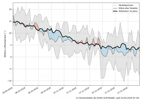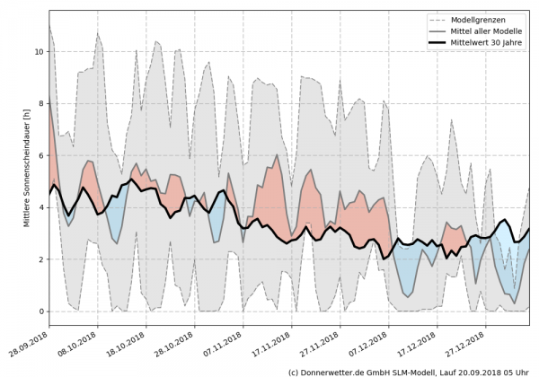 Den mittleren Lufttemperaturen gelingen in den kommenden Wochen im Süden zwar keine großen Sprünge mehr, die Anzahl der berechneten Sonnenstunden deutet aktuell aber auf viele freundliche Altweibersommertage hin. Die Tagesniederschlagssummen bewegen sich bis Mitte Oktober meist unter dem langjährigen Mittel.