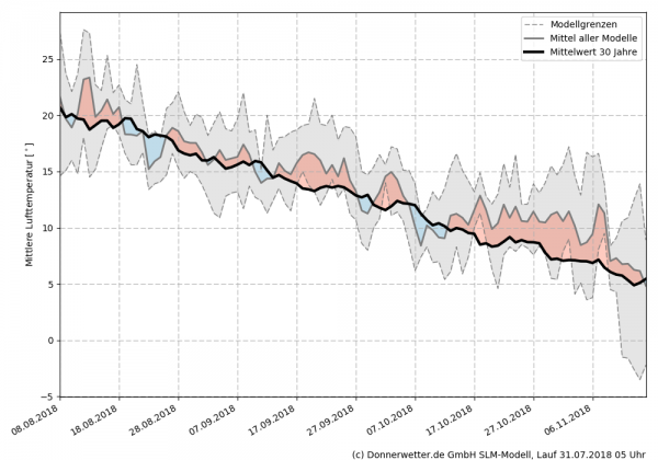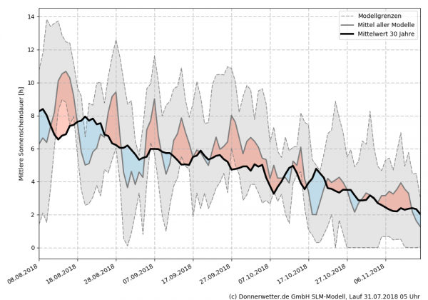 Unsere aktuellen Langfristprognosen für Lufttemperatur, Sonnenscheindauer und Niederschlagshöhe.