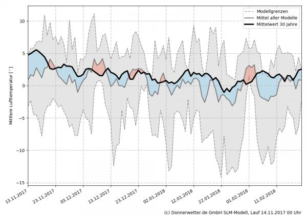 Der Osten steuert in den kommenden Wochen eine frische und eher sonnenarmen Wetterphase zu - sowohl die mittleren Lufttemperaturen als auch die Sonnenscheindauer liegen laut aktuellem Modell unter dem langjährigen Mittel. Dafür deutet sich vor allem der Dezember nach jetzigem Stand als zu trocken an. Das widerum schmälert die Hoffnung vieler auf ein paar weiße Tage um Weihnachten herum.