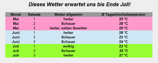 Das Dekadenwetter von Mai bis Ende Juli!