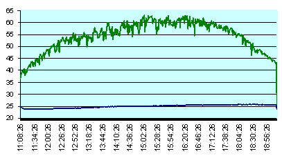 Luft draußen. Auch nachts sind die Werte noch um 4°C höher, was auf die Dachpfannen zurückzuführen ist, die sich nachmittags auf bis zu 60°C erwärmen können.