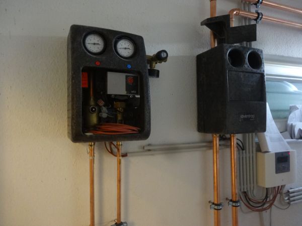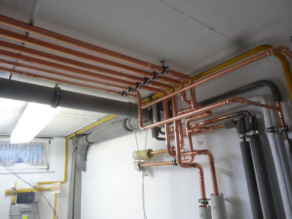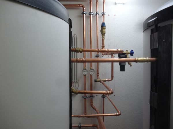 Der Solarenergiespeicher stehen und das Anbringen und Anschließen der Kupferrohrleitungen ist vollbracht. Die Errichtung der Solaranlage steht noch an:
