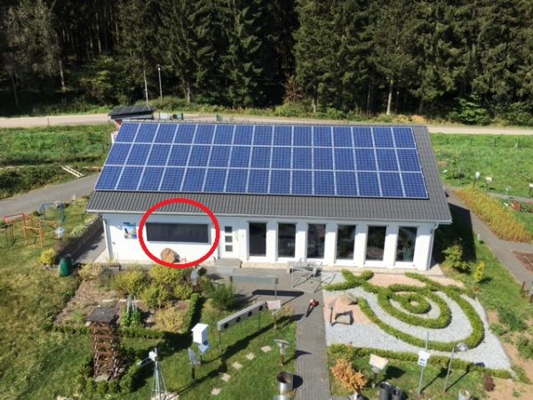 Da hier die Sonne auf die nach Südost ausgerichtete Hauswand bis zum Nachmittag ungestört scheinen kann, bot sich solch eine Anlage hervorragend an. Wir zeichnen die Raumtemperaturen an verschiedenen Stellen auf, so dass sich gut Vergleiche anstellen lassen, um folgende Frage zu beantworten: Bringt die solare Wärme überhaupt etwas, wenn es um das Beheizen der Räume geht?