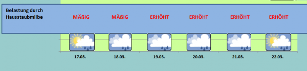 Statt Sonnenschein müssen wir uns am Wochenende mit nassem, kühlem und windigem Wetter arrangieren. Mit dem großen Wetterwechsel lassen dann auch die Milben nicht mehr lange auf sich warten: Allergiker müssen in den nächsten Tagen mit zum Teil erhöhten Belastungen rechnen.