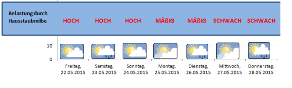 Das Hochdruckgebiet in der neuen Woche bringt uns dann wieder trockenere Luft, die Allergiewahrscheinlichkeit durch Hausstaub nimmt ab.