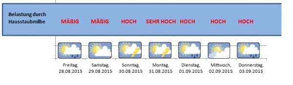 Vor allem das Regenwetter ab Sonntagabend kann zu Beginn der neuen Woche für erhebliche Belastungen durch Hausstaub führen.