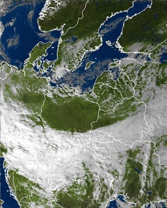 viele Wolken noch im Satellitenbild zu sehen