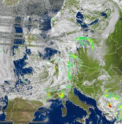 Teils kräftige, langanhaltende und ergiebige Niederschläge über Portugal, Spanien und Frankreich