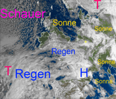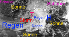 Regen- und Schneewolken über Mitteleuropa