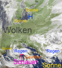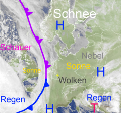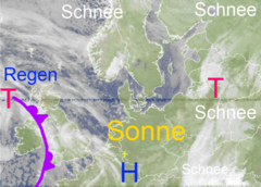 Schwache Front mit etwas Schnee auf dem Weg nach Westdeutschland