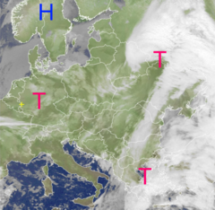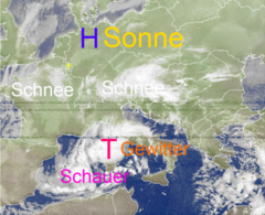 Ausgeprägter Wolkenwirbel südlich von Moskau