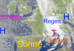 Regenwolken formieren sich über Südwesteuropa