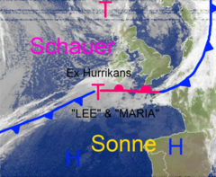 Ehemalige Hurrikans 'LEE' und 'MARIA' bringen Südhälfte viel Regen